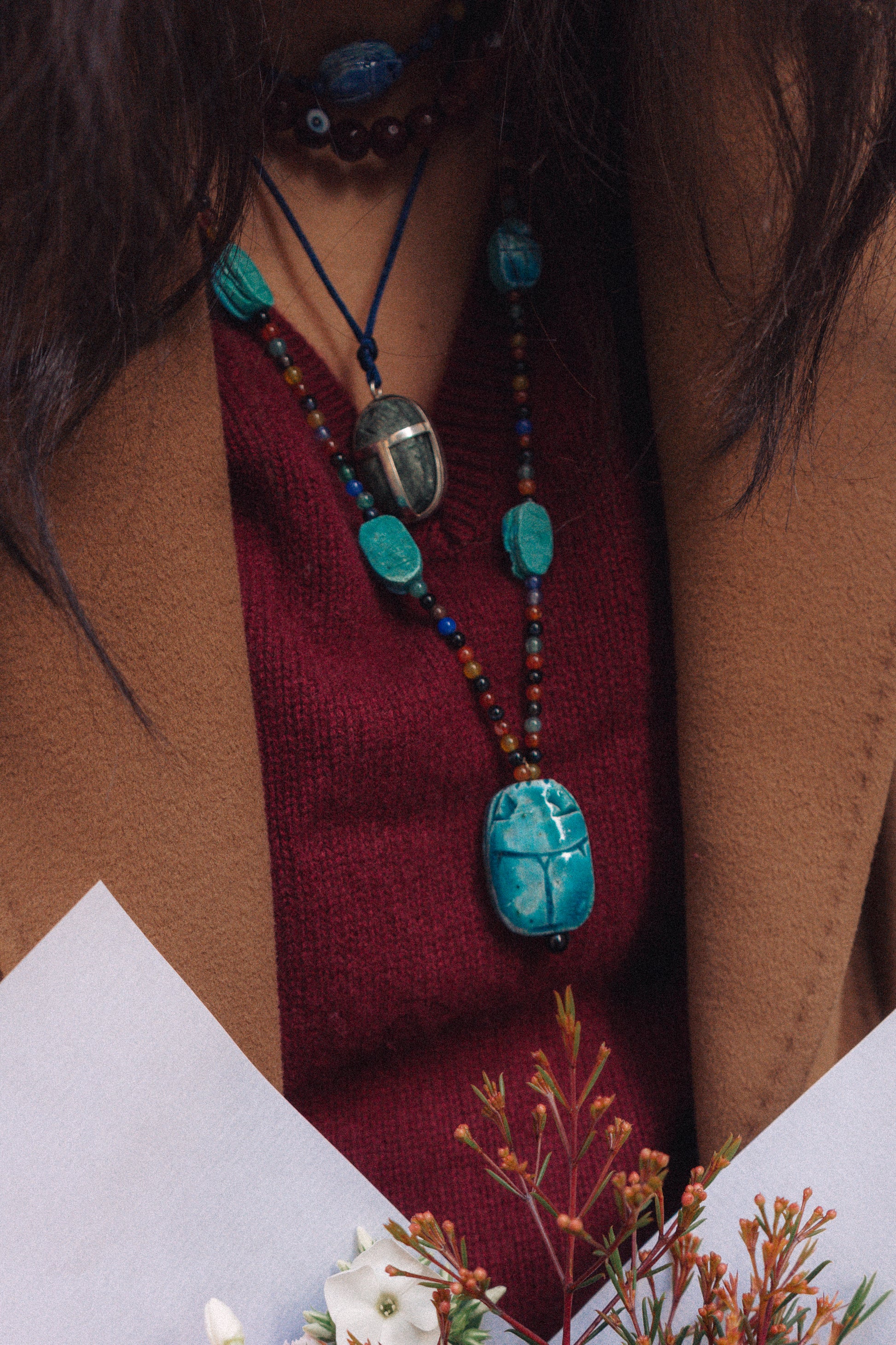 An ancestral emblem of protection and transformation, the scarab embodies vital force and renewal.